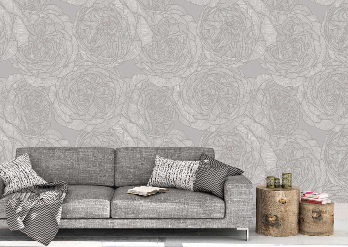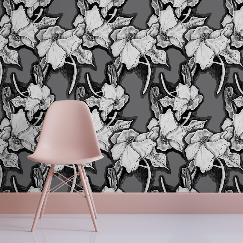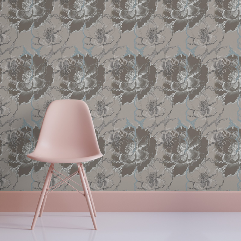 טפט Dark Peonies – Light Grey