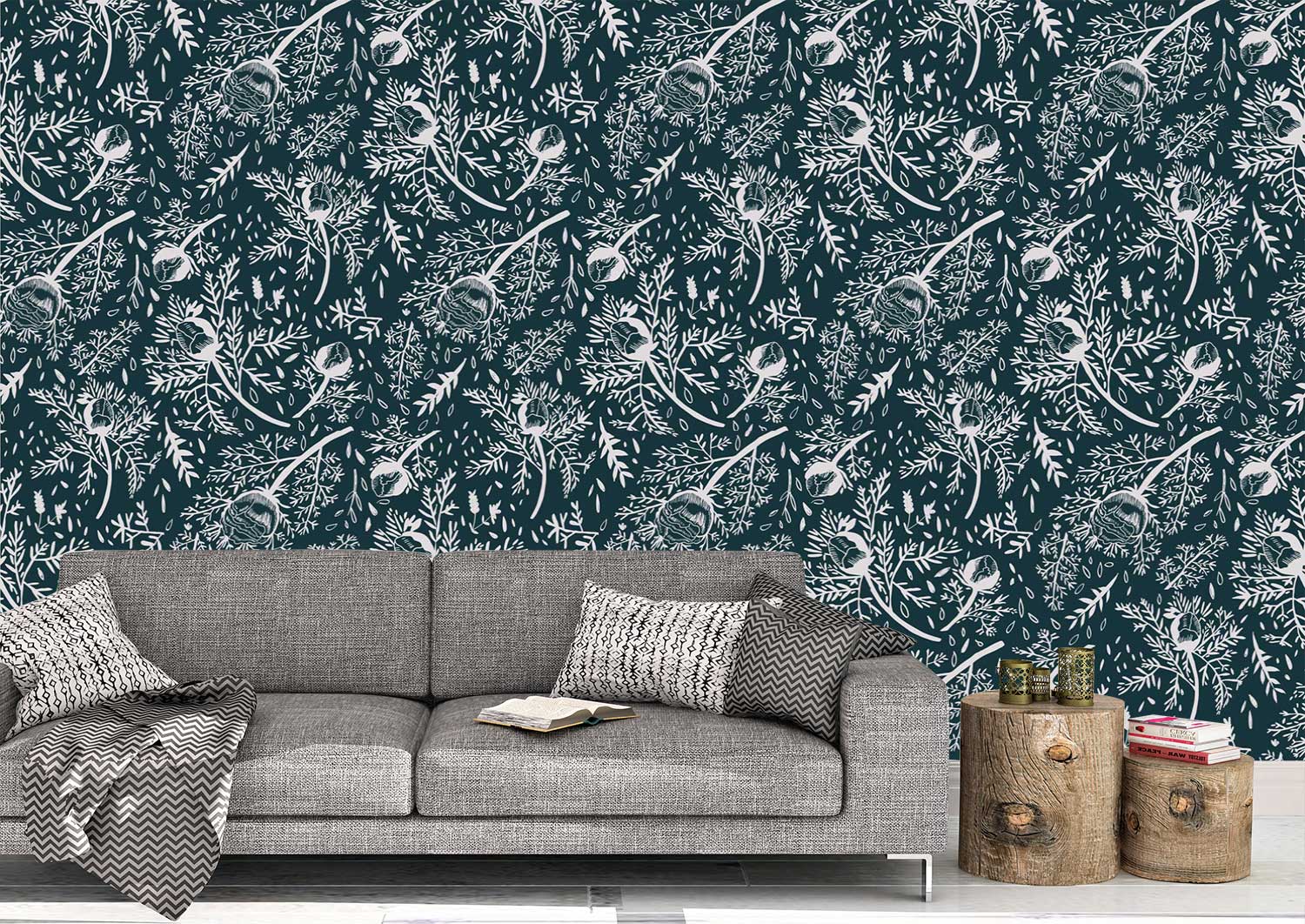 טפט Silver Buds – Midnight Blue